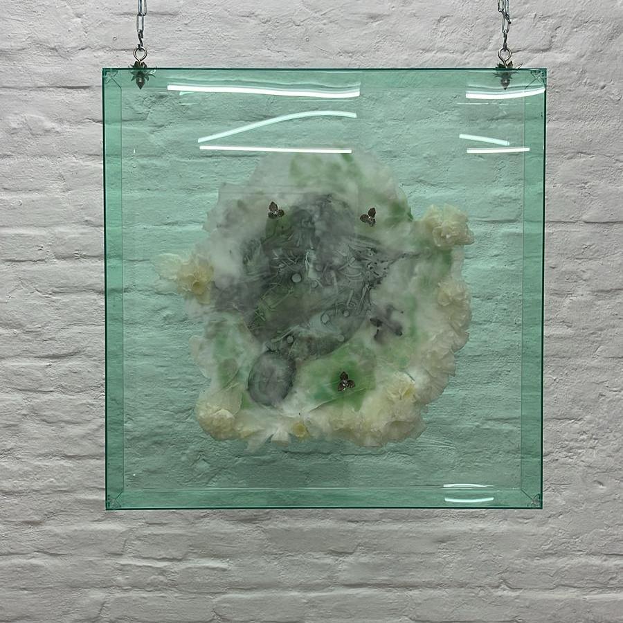 «Limpia de siete hierbas para Simon Speiser” es una obra que funciona como amuleto y que es enviado a Berlín, como un objeto contenedor de un rito de limpieza energética, que a través de las combinaciones entre cosmovisión, representaciones científicas y materia, solicita un cambio de energías y protección para el curador de la muestra.